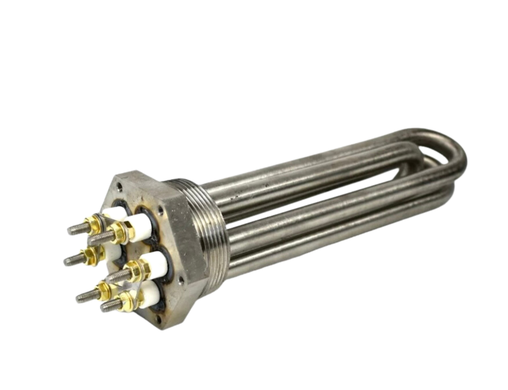El calentador de inmersión con brida está hecho de tubo de acero inoxidable sin costuras, Mgo de alta calidad, es más eficiente en el intercambio de calor, lo que significa que el calentador de inmersión con brida podría tener una potencia estándar de 3 a 4 veces.