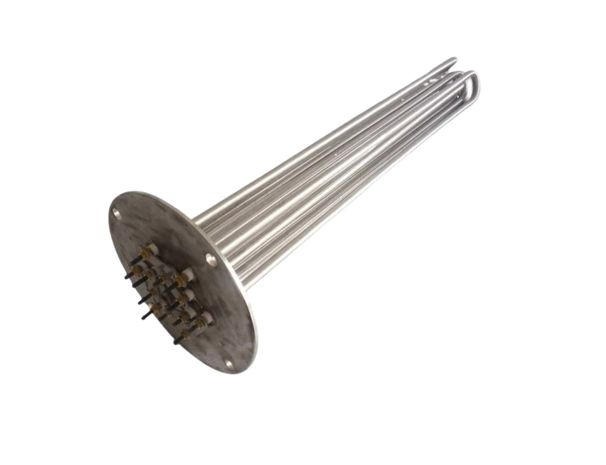 El calentador de inmersión con brida está hecho de tubo de acero inoxidable sin costuras, Mgo de alta calidad, es más eficiente en el intercambio de calor, lo que significa que el calentador de inmersión con brida podría tener una potencia estándar de 3 a 4 veces.